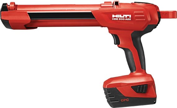 Vstřikování lepicí hmoty Hilti HIT k upevnění kotevních a armovacích tyčí do betonu a zdiva